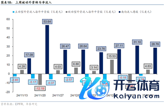 资金面视角,上周主动外资流出外洋中资股幅度旯旮有所扩大,但当今仍位于11月以来较低水位;被迫外资则转为净流入。洽商到自国庆以来主动外资执续流出、近似圣诞节日期效应影响,当今主动外资筹码结构或充分出清。南向呈现加快流入态势,上周净流入约280亿元,日均流入额较上上周有所扩大;结构上近四周南向主要流入银行、电子、通讯等行业,盈利预期慎重且对关税等交易摩擦相对不敏锐或所以上行业共性。空头方面,上周恒指沽空往返周平均占比飞腾至约14.5%、当今处于中性水位,其中元旦后空头往返拥堵度快速飞腾。产业成本方面,上周回购金额较前值小幅回升。